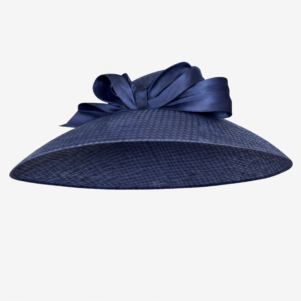Fabulous handblocked hat if you’re after show stopper, finished with a window pane brim and large silk bow, it can be made in any colour.