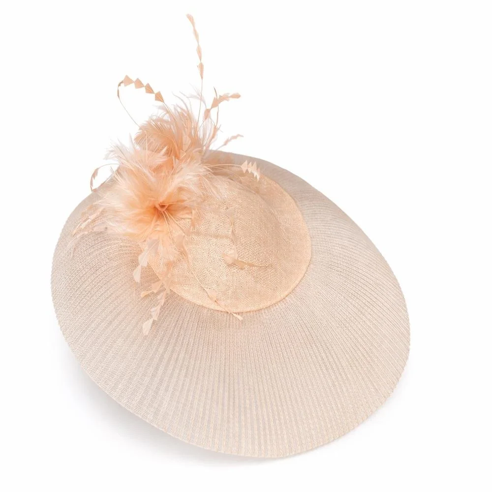 Stunningly simple but striking Percher, that sits low on the head with the pleated and stiffened crinoline forming the veil, seen here on peach but can be made in any colour